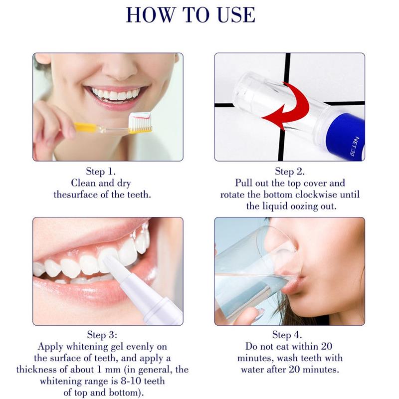 The nano-molecular of the tooth whitening pen can clean the stains, improve the plaque, and make the teeth shine longer.